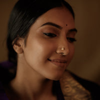 Influenced by the traditional nose pins worn in the South mid 20th Century, this Mookuthi has a presence. With sizeable diamonds that catch and reflect light like no other, this piece will own any nose that dares to wear it. It lends itself to every possible nose shape and is extremely versatile to style. Make it your own to add a lot more light to your days and nights.