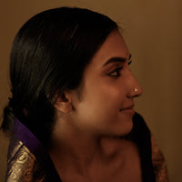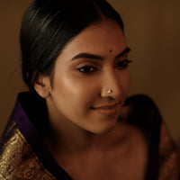 Handcrafted with diamonds and gold, this Mookuthi might look coy, but catches enough light to be a favourite among those who are yet to experiment with bigger Mookuthis. Extremely versatile and an absolute classic - the Mookuthi shall be a friend to your cottons and linens, and a lover of your silks. Style it as you may!
