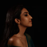 One that celebrates all that a full moon night has to offer. A diamond studded Mookuthi to mimic a night where the Nila shines the brightest. Loves all noses alike. This Mookuthi shines regardless of what you pair it with!