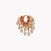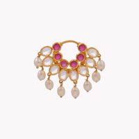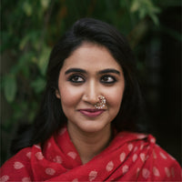Bold, ornate and regal. This mookuthi has been handcrafted with a lot of love to add to your oomph. Inspired from the Ravi Varma palette, with just the right amount of rubies, white sapphires and pearls that move as you move. Suited for all nose types, the Nath is here to be your force to reckon with. Incredibly versatile, this mookuthi has a mood of its own - feel free to style it your way.