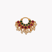 Punctuated with deep red rubies, green and white emeralds, and pearls – mimicking the audacious colours in Ravi Varma’s portraitures. The first Septum we have ever designed and we can't wait to reach the ones with a septum piercing. Bold, ornate, & for the daring - maybe even everyday.