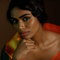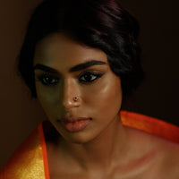Imitating the dome structure of the Vimana of the Brihadeeswara Temple in Thanjavur. With an inverted diamond that sits atop the otherwise gold Mookuthi, it has been our attempt to translate this Cholan architectural splendour onto a Mookuthi for your keepsake. A perfect piece to spruce up your everyday.